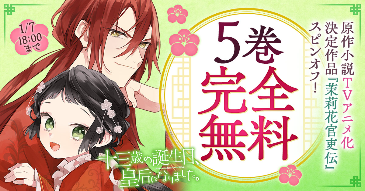 十三歳の誕生日、皇后になりました。・第1話十三歳の誕生日、皇后になりました。・第1話 十三歳の誕生日、赤奏国の皇帝に後宮入りを願い出るために茘枝城にやってきた莉杏。この日を迎えるにあたって、皇帝に気に入られる妃になるため必死に勉強を重ねてきた彼女だが、いざ謁見の間に進んだところで、彼女を待っていたのは…たった今帝位を簒奪し、新たな皇帝の座についた暁月だった。しかも、彼の口から飛び出したのは「妃」ではなく「皇后」として莉杏を迎え入れる、という驚きの内容。なりゆきで簒奪者の皇后となった莉杏と、彼女を娶った皇帝・暁月の、夜毎に夫婦の絆が深まる恋物語が始まる!!