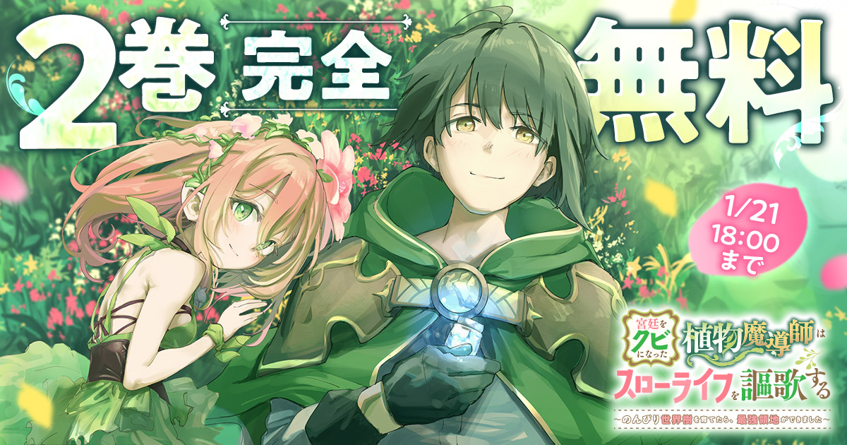 宮廷をクビになった植物魔導師はスローライフを謳歌する~のんびり世界樹を育てたら、最強領地ができました~・第1話前編宮廷をクビになった植物魔導師はスローライフを謳歌する~のんびり世界樹を育てたら、最強領地ができました~・第1話前編 チートを隠しきれない最強魔導師、念願のスローライフを始めます!前世では社畜生活の果てに過労死してしまったリィト。転生後はレアスキル「植物魔法」を駆使して戦争を終わらせ、英雄として崇められるが、同僚にハメられて宮廷を追放されてしまう。「ようやく自分だけの理想の村が作れる!」——元々スローライフを渇望していたリィトはこれ幸いと荒れ果てた土地を手に入れ、植物を自由に操り、勝手気ままなスローライフを謳歌する。無意識に発揮されるリィトのチートで村はどんどん潤い、リィトのもとには花人族の少女や猫人族の少女、さらには帝国の皇女まで訪れるようになり…!?