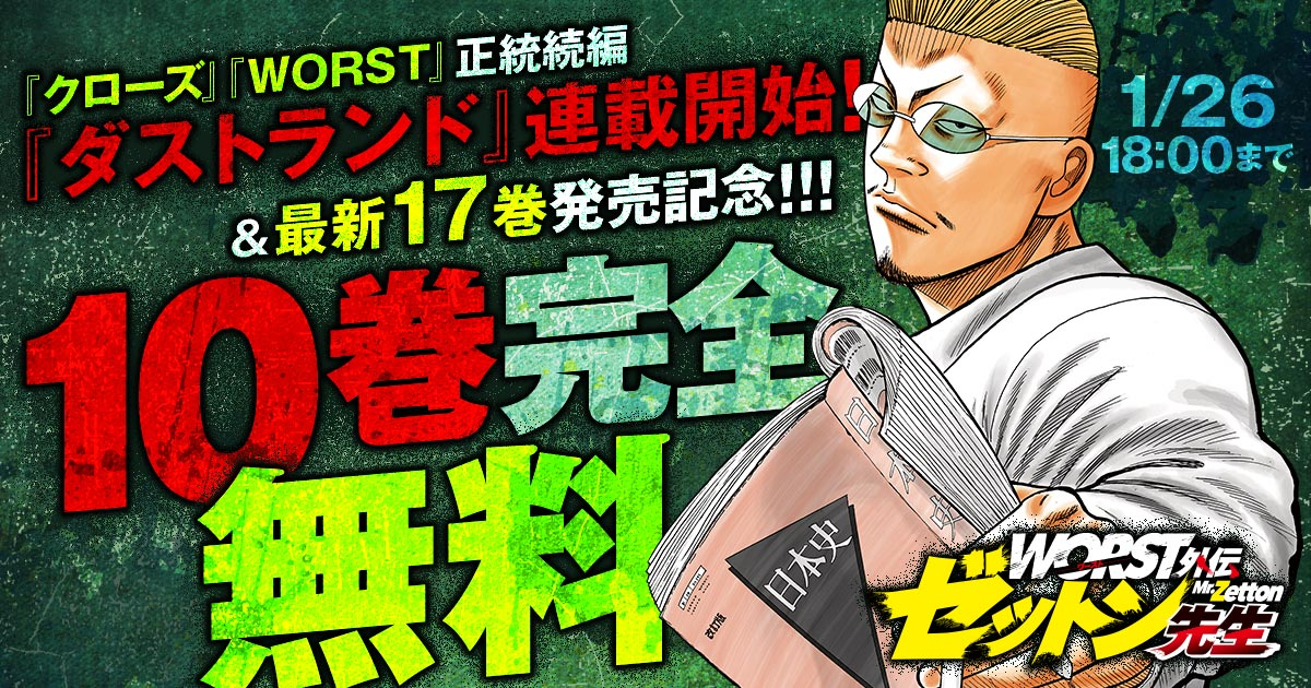 1/13(火)より『WORST外伝 ゼットン先生』が'無料で読めるキャンペーン'を開催中!