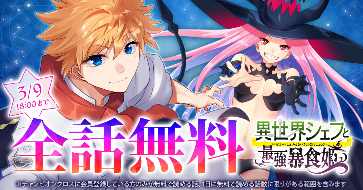 キャンペーンは3/9(月)までの期間限定なので、ぜひこの機会にお楽しみください! ※チャンピオンクロスに会員登録している方のみが無料で読める話を含む場合がございます。