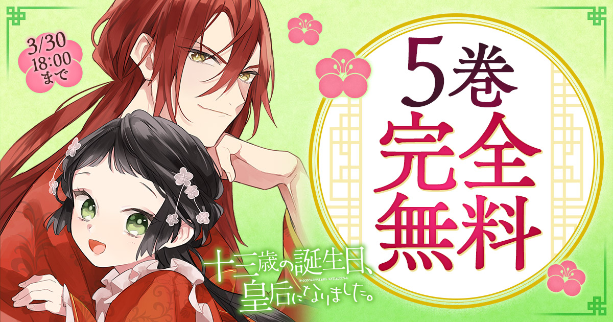 十三歳の誕生日、皇后になりました。・第1話十三歳の誕生日、皇后になりました。・第1話 十三歳の誕生日、赤奏国の皇帝に後宮入りを願い出るために茘枝城にやってきた莉杏。この日を迎えるにあたって、皇帝に気に入られる妃になるため必死に勉強を重ねてきた彼女だが、いざ謁見の間に進んだところで、彼女を待っていたのは…たった今帝位を簒奪し、新たな皇帝の座についた暁月だった。しかも、彼の口から飛び出したのは「妃」ではなく「皇后」として莉杏を迎え入れる、という驚きの内容。なりゆきで簒奪者の皇后となった莉杏と、彼女を娶った皇帝・暁月の、夜毎に夫婦の絆が深まる恋物語が始まる!!