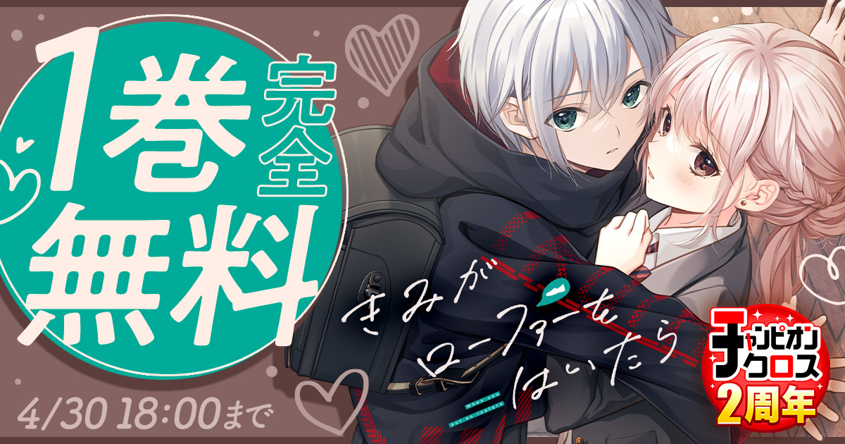 キャンペーンは4/30(木)までの期間限定なので、ぜひこの機会にお楽しみください! ※チャンピオンクロスに会員登録している方のみが無料で読める話を含む場合がございます。