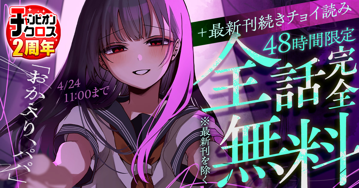 キャンペーンは4/24(金)までの期間限定なので、ぜひこの機会にお楽しみください! ※チャンピオンクロスに会員登録している方のみが無料で読める話を含む場合がございます。 ※最新刊(5巻)除く